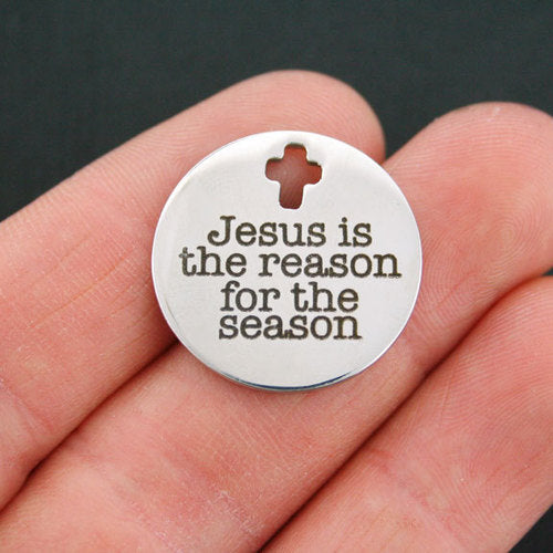 Breloques rondes découpées en croix en acier inoxydable gravées au laser "Jésus est la raison de la saison", de notre ligne exclusive conçue par Bohemian Findings.