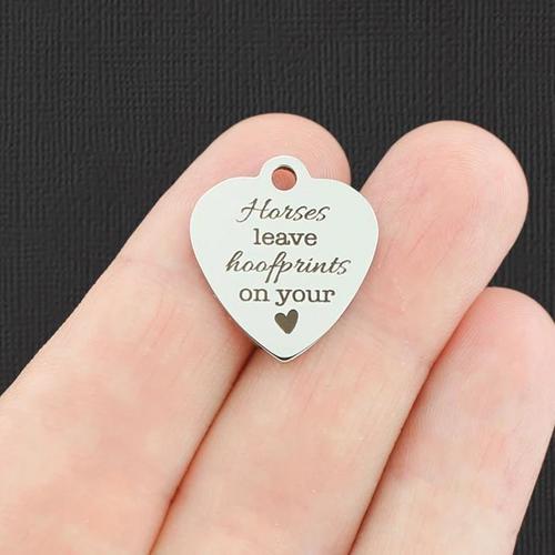 "Les chevaux laissent des empreintes de sabots sur votre cœur" breloques cœur en acier inoxydable gravées au laser avec image de cœur , de notre ligne exclusive conçue par Bohemian Findings.