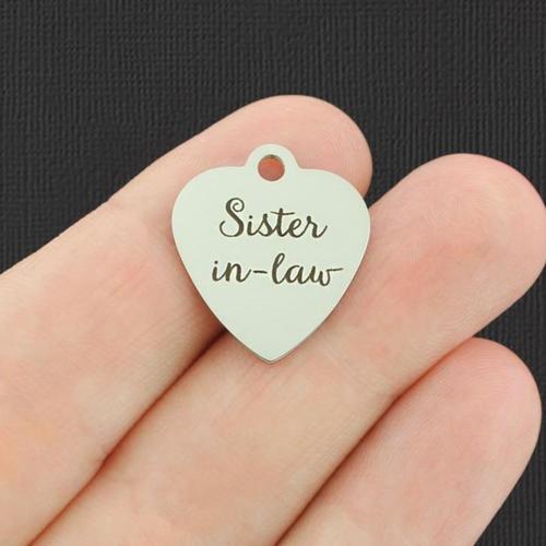 Breloques cœur en acier inoxydable gravées au laser "belle-sœur", de notre ligne exclusive conçue par Bohemian Findings.