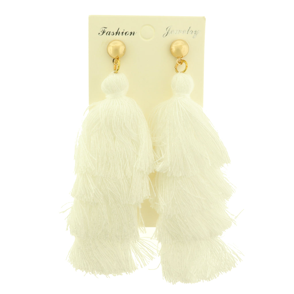 Elegant cotton tassles with a gold tone alloy earring stud.. Available in 5 red, yellow, blue, white, and black!
