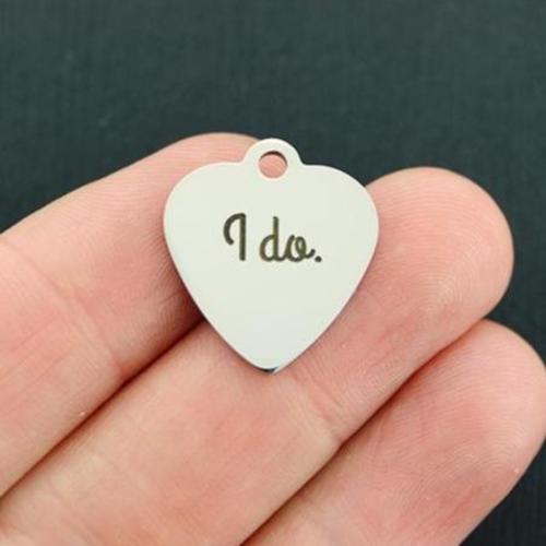 "Je fais." breloques cœur en acier inoxydable gravées au laser, de notre ligne exclusive conçue par Bohemian Findings.