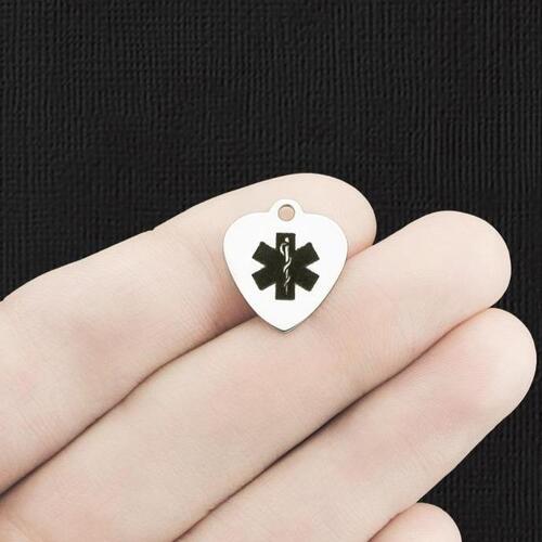 Breloques cœur en acier inoxydable gravées au laser avec symbole médical, de notre ligne exclusive conçue par Bohemian Findings.