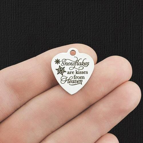 "Les flocons de neige sont embrassés du ciel" charms cœur en acier inoxydable gravés au laser avec image de flocon de neige , de notre ligne exclusive conçue par Bohemian Findings.