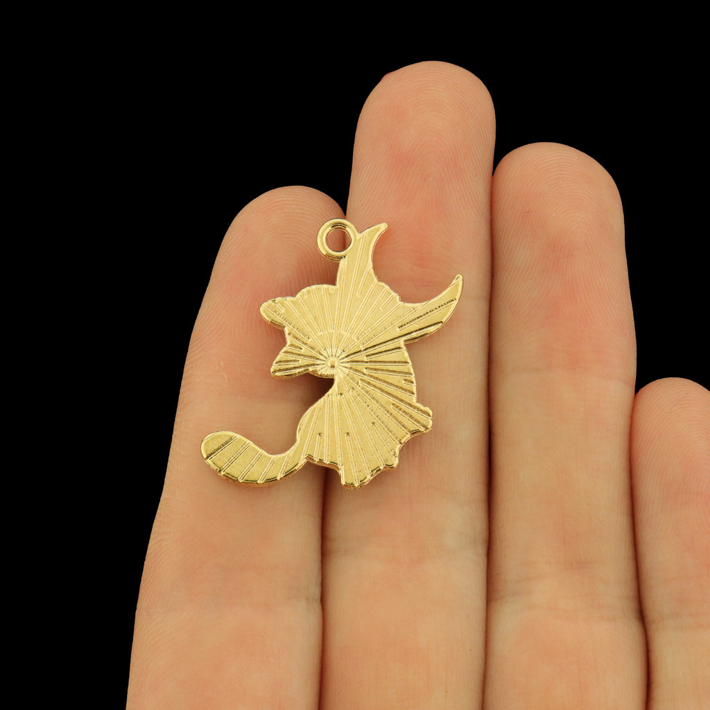 Take a look at these cute celestial black cat charms.. the cat is hanging onto the moon for dear life! They are made of alloy and finished with yellow and black enamel.