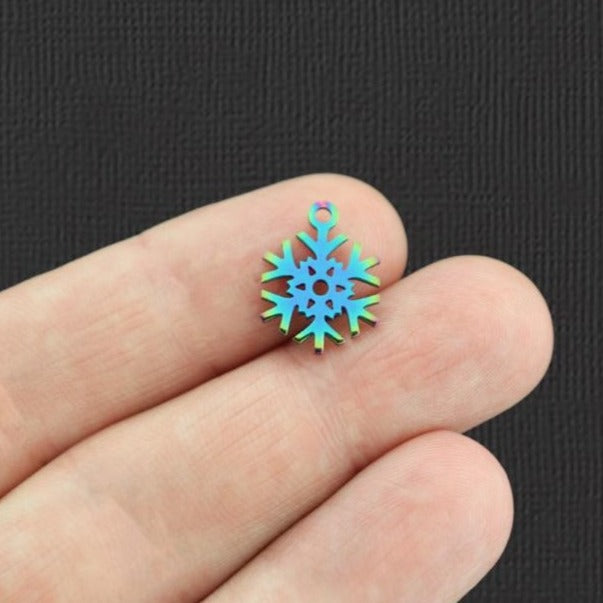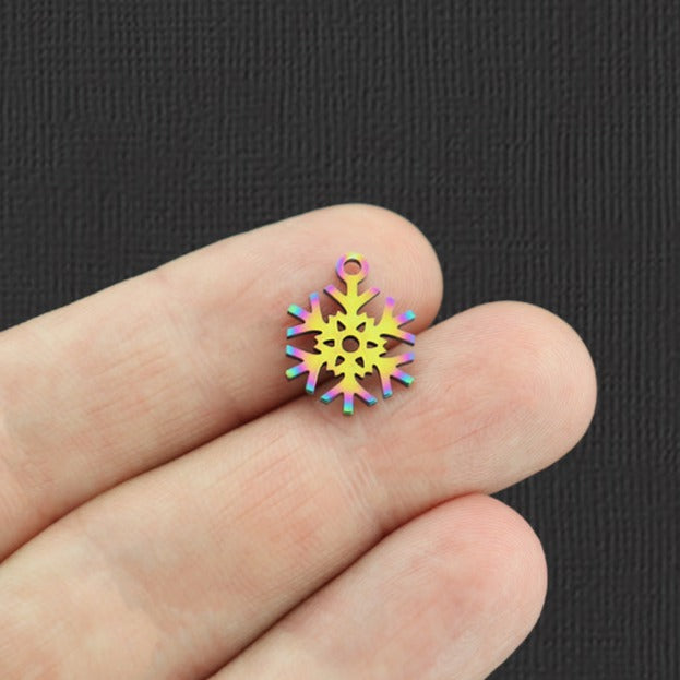 Breloques en acier inoxydable arc-en-ciel plaquées flocon de neige. Parfait pour les bracelets, pendentifs, boucles d'oreilles, tirettes de fermeture éclair, signets et porte-clés !