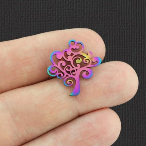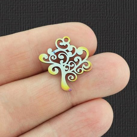 Breloques arbre de vie en acier inoxydable arc-en-ciel électrolytique. Parfait pour les bracelets, pendentifs, boucles d'oreilles, tirettes de fermeture éclair, signets et porte-clés !