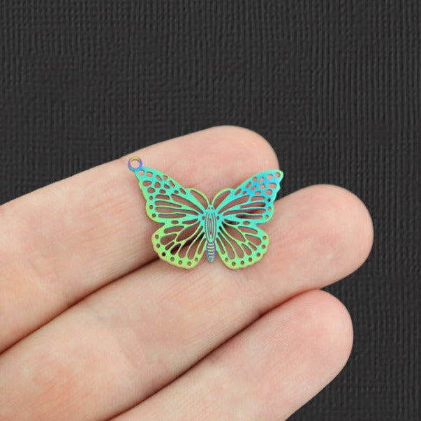 Breloques en acier inoxydable arc-en-ciel galvanisées papillon en dentelle. Parfait pour les bracelets, pendentifs, boucles d'oreilles, tirettes de fermeture éclair, signets et porte-clés !