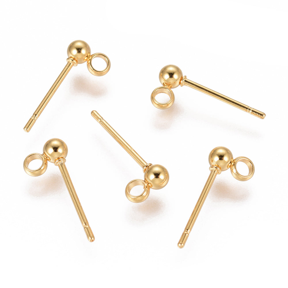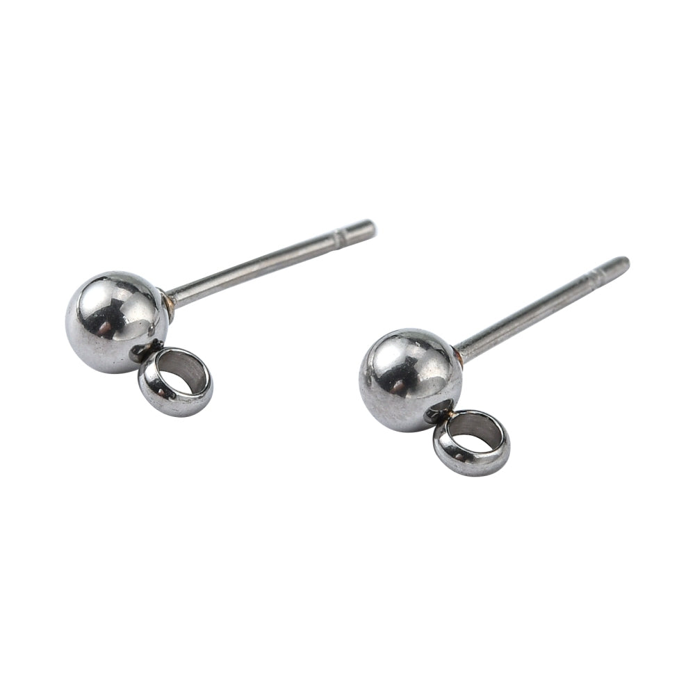 High quality 304 stainless steel nickel-free ball post studs with an attached loop.. the perfect base for your next creation. Hypoallergenic and will not tarnish!