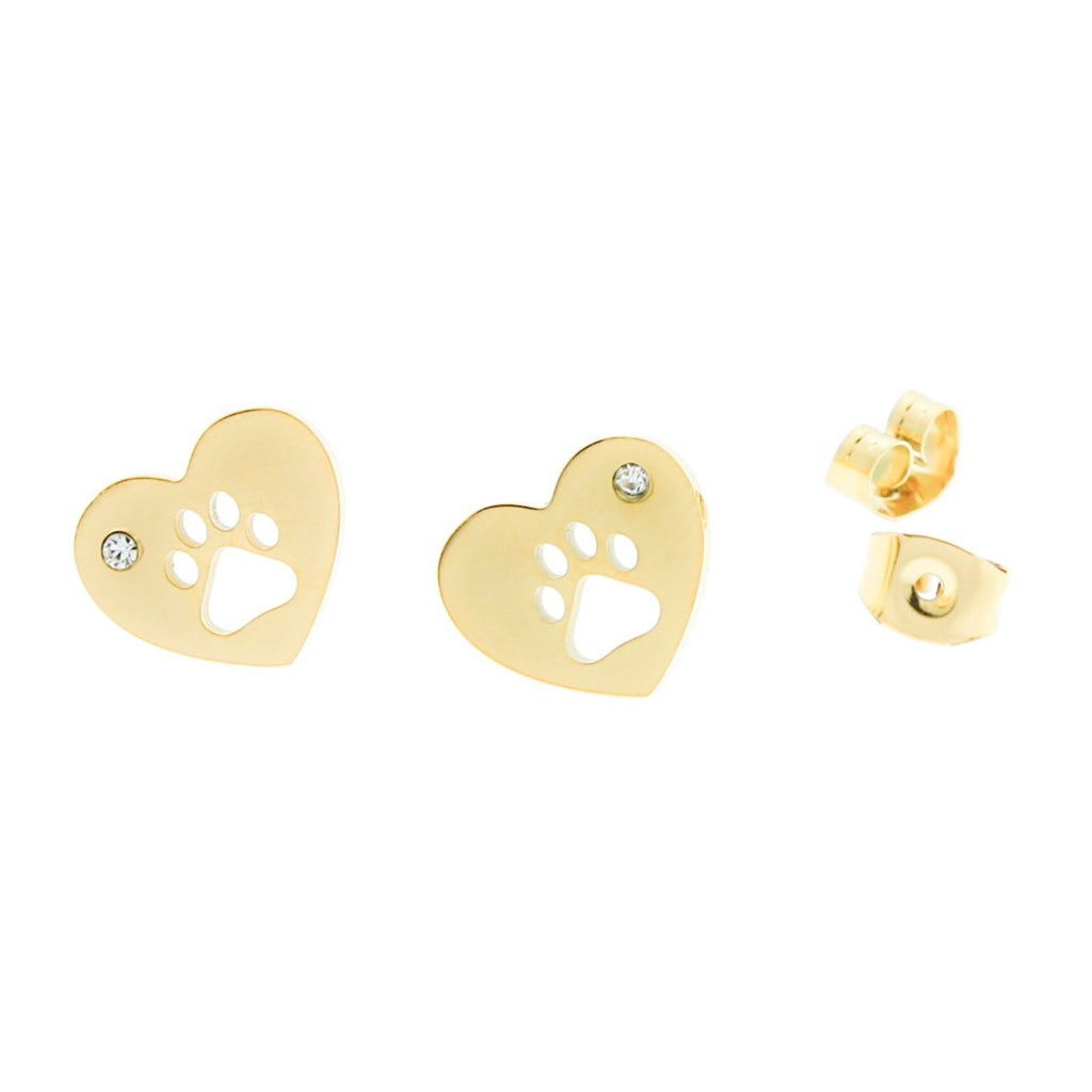 Boucles d'Oreilles en Acier Inoxydable - Goujons Strass Coeur Empreinte de Patte - 12mm x 10mm - 2 Pièces 1 Paire - ER009