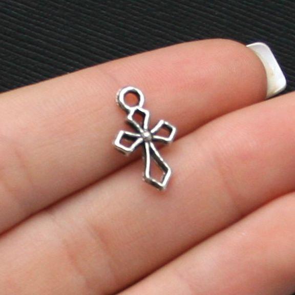 Breloques croix argentées antiques, en alliage de zinc. Parfait pour les bracelets, pendentifs, boucles d'oreilles, tirettes de fermeture éclair, signets et porte-clés !