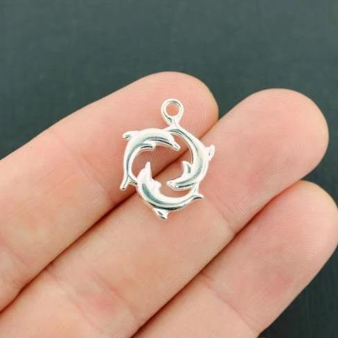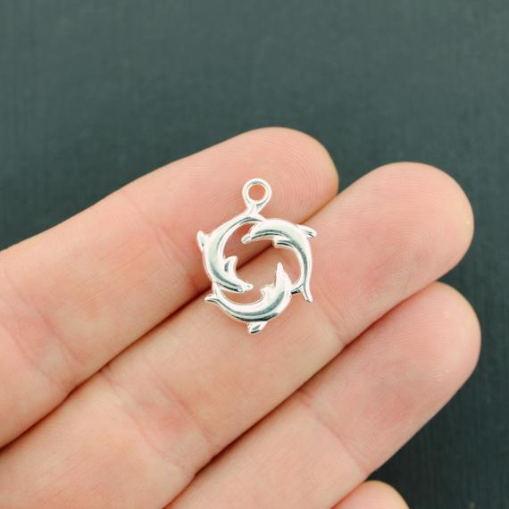 Breloques trois dauphins dans un cercle argenté, en alliage de zinc. Parfait pour les bracelets, pendentifs, boucles d'oreilles, tirettes de fermeture éclair, signets et porte-clés !