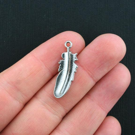 Breloques plumes argentées antiques, en alliage de zinc. Parfait pour les bracelets, pendentifs, boucles d'oreilles, tirettes de fermeture éclair, signets et porte-clés !