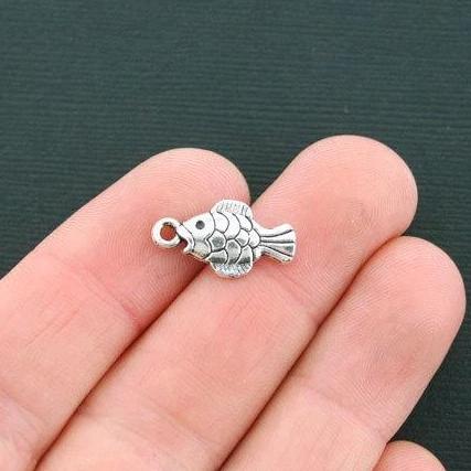Breloques poisson argenté antique, en alliage de zinc. Parfait pour les bracelets, pendentifs, boucles d'oreilles, tirettes de fermeture éclair, signets et porte-clés !