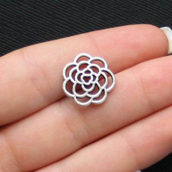 Breloques fleur argent antique, en alliage de zinc. Parfait pour les bracelets, pendentifs, boucles d'oreilles, tirettes de fermeture éclair, signets et porte-clés !