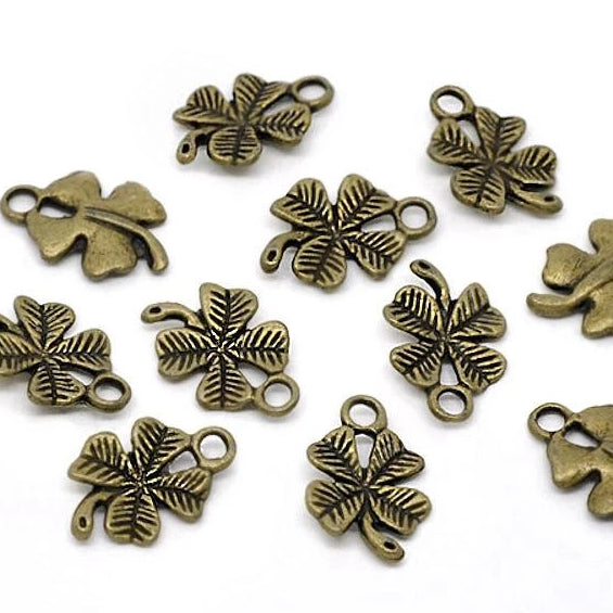 Porte-bonheur trèfle à quatre feuilles porte-bonheur bronze antique, en alliage de zinc. Parfait pour les bracelets, pendentifs, boucles d'oreilles, tirettes de fermeture éclair, signets et porte-clés !