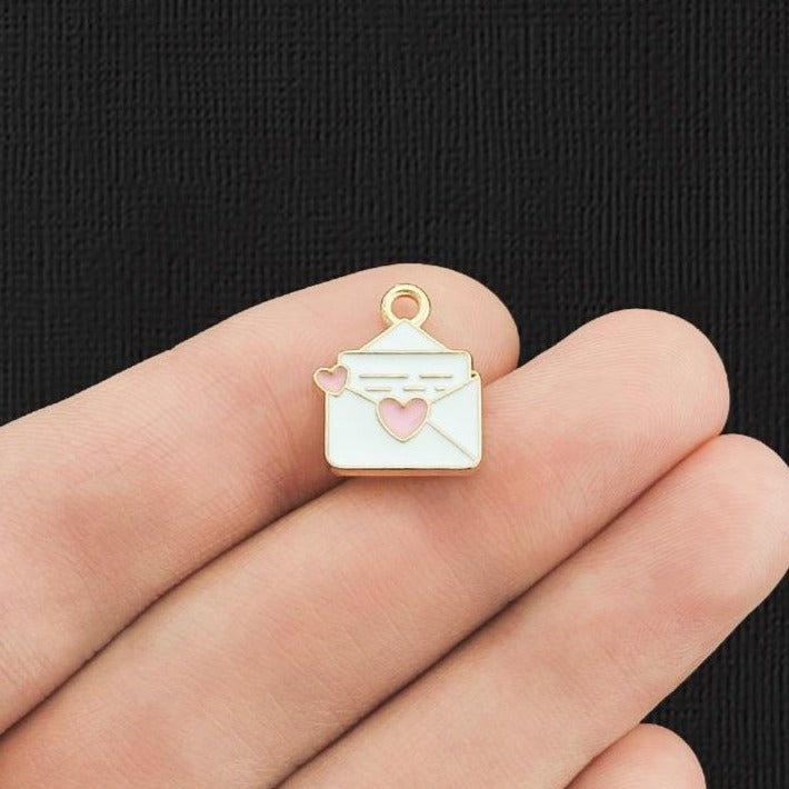Breloques enveloppe dorées, en alliage de zinc et émail. Parfait pour les bracelets, pendentifs, boucles d'oreilles, tirettes de fermeture éclair, signets et porte-clés !