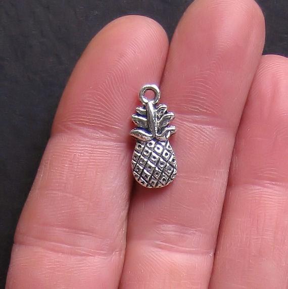 Ananas ton argent antique Breloques 2 faces, en alliage de zinc. Parfait pour les bracelets, pendentifs, boucles d'oreilles, tirettes de fermeture éclair, signets et porte-clés !