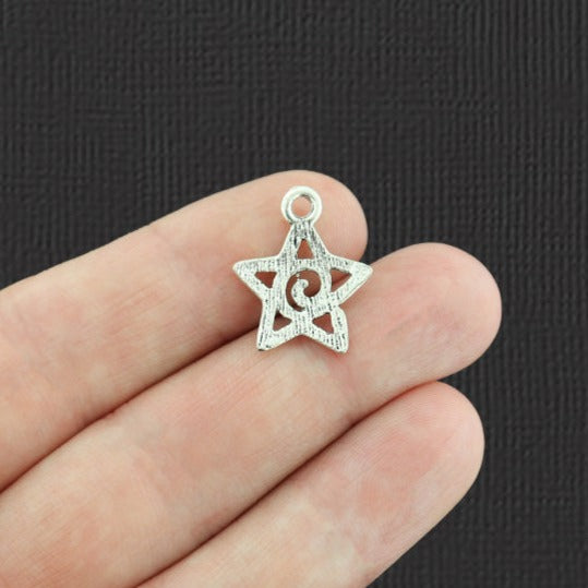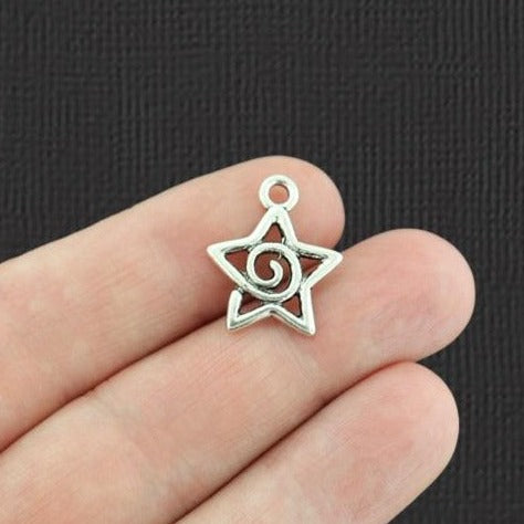 Contour d'étoile avec breloques argentées antiques à motif tourbillonnant, dans un métal en alliage de zinc. Parfait pour les bracelets, pendentifs, boucles d'oreilles, tirettes de fermeture éclair, signets et porte-clés !