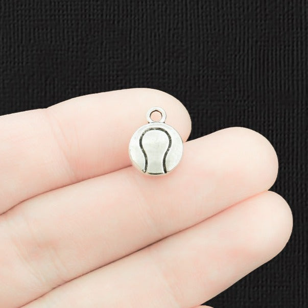 Breloques balle de tennis argentées antiques, en alliage de zinc. Parfait pour les bracelets, pendentifs, boucles d'oreilles, tirettes de fermeture éclair, signets et porte-clés !