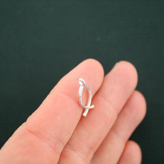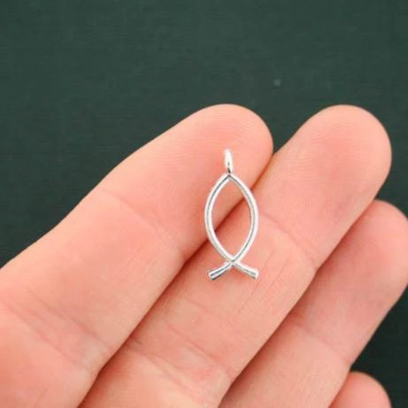 Breloques Christian Fish argentées antiques, dans un métal en alliage de zinc. Parfait pour les bracelets, pendentifs, boucles d'oreilles, tirettes de fermeture éclair, signets et porte-clés !
