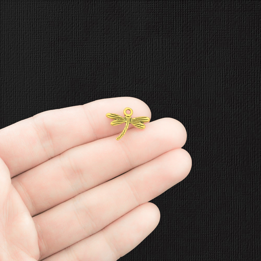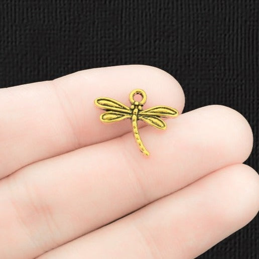Breloques libellule couleur or antique, en alliage de zinc. Parfait pour les bracelets, pendentifs, boucles d'oreilles, tirettes de fermeture éclair, signets et porte-clés !