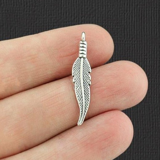 Breloques plume bohème argentées antiques, dans un métal en alliage de zinc. Parfait pour les bracelets, pendentifs, boucles d'oreilles, tirettes de fermeture éclair, signets et porte-clés !