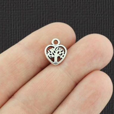 Breloques arbre de vie avec connecteur coeur ton argent vieilli, en alliage de zinc. Parfait pour les bracelets, pendentifs, boucles d'oreilles, tirettes de fermeture éclair, signets et porte-clés !