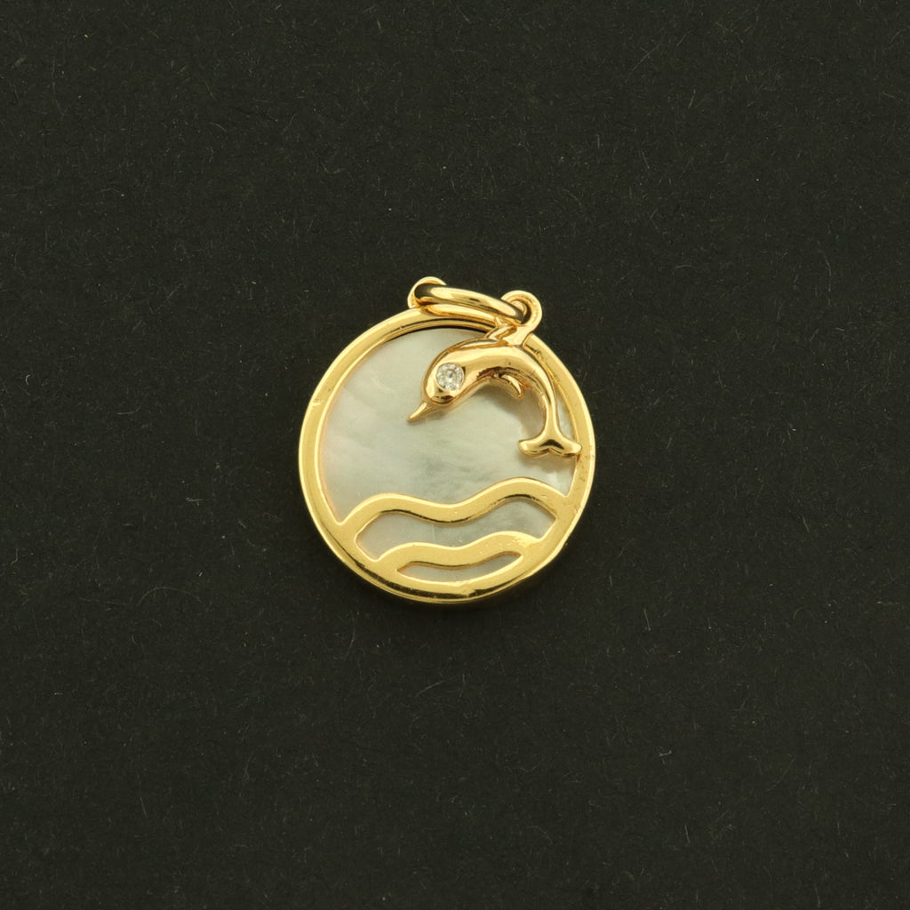 Check out these super detailed dolphin charms.. made of 14k gold plated copper, they are finished with natural shell and a dangling dolphin.. it even has a rhinestone for an eye! Very eye catching (no pun intended)!