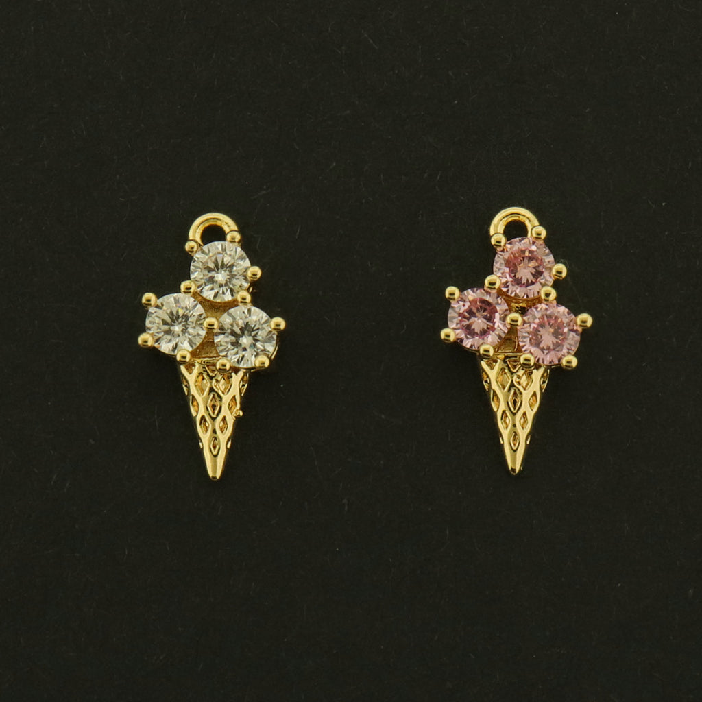Check out these super cute ice cream charms... They are made of 14k gold plated brass and finished with colorful rhinestones. Choose from pink or clear stones!