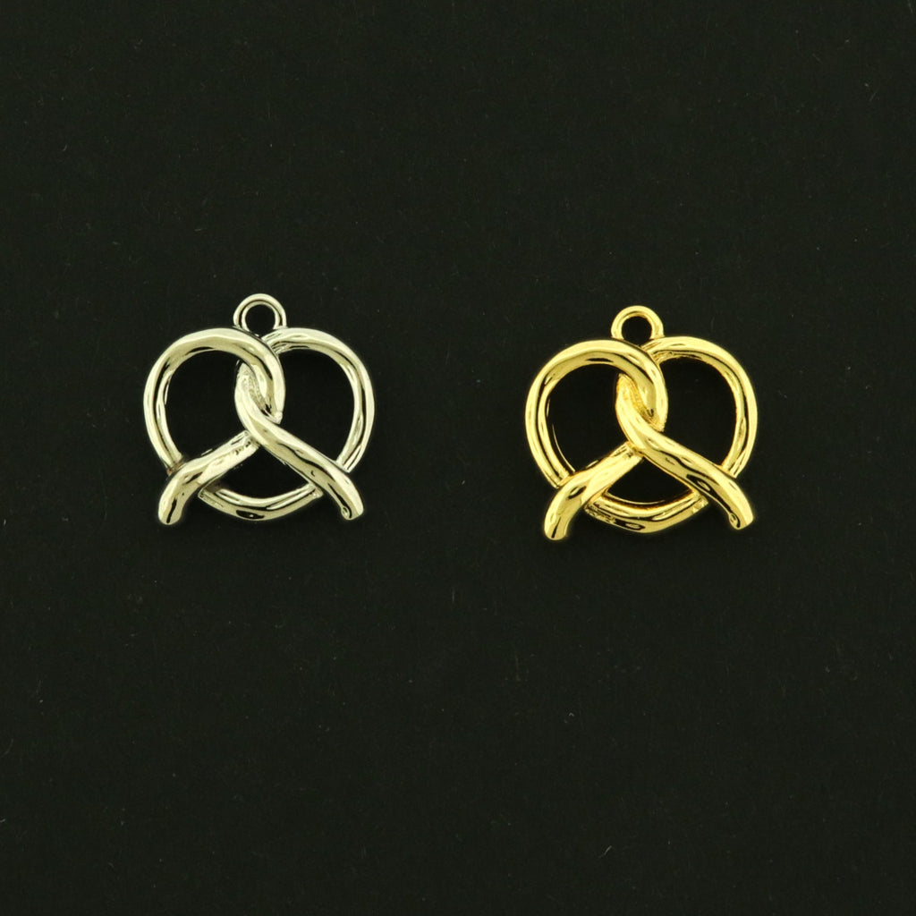 Check out these super cute pretzel charms... They are made of brass and are finished in either 14k gold plating or white gold plating!