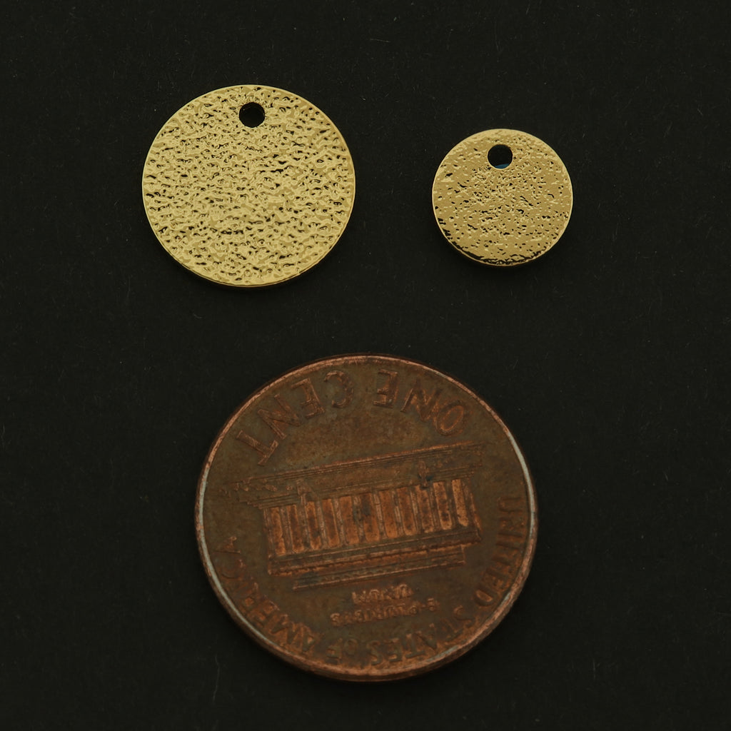Check out these super cute round textured charms... They are made of 14k gold filled brass. Choose from two different sizes!