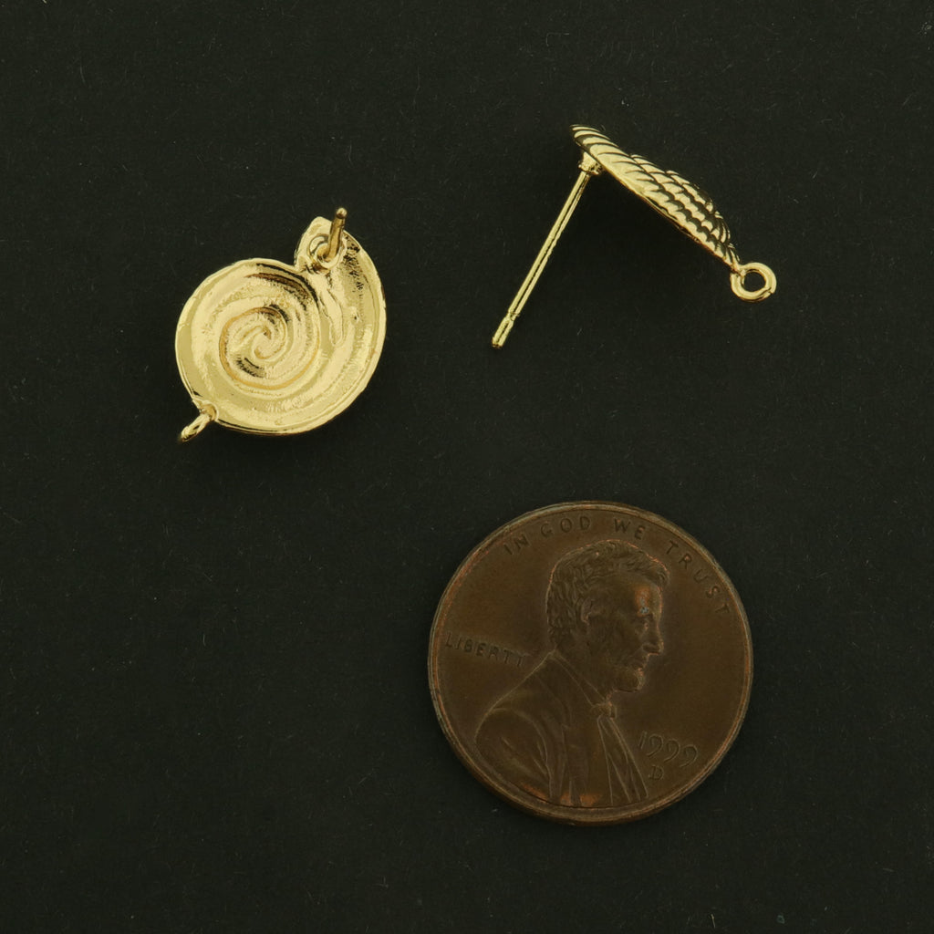 14k Sea Shell Earrings - 1 Pair - Conch Design - 14k Gold Plated Brass - GLD1036