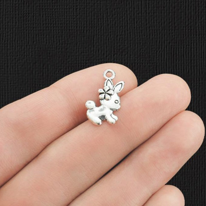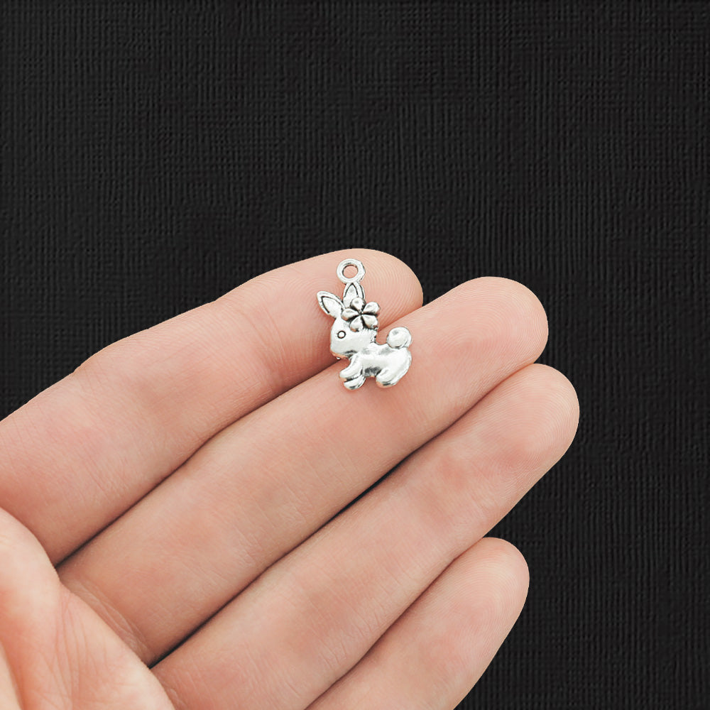 Breloques lapin argenté antique, en alliage de zinc. Parfait pour les bracelets, pendentifs, boucles d'oreilles, tirettes de fermeture éclair, signets et porte-clés !