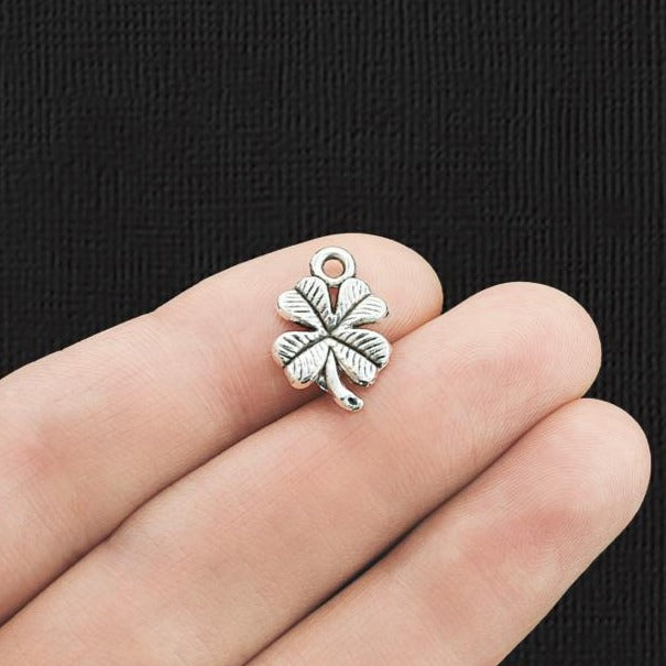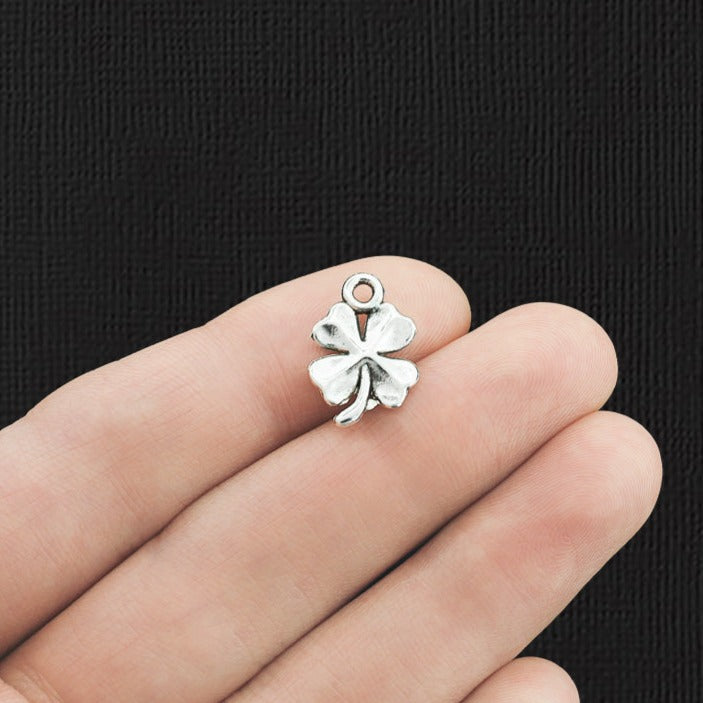 Breloques trèfle à quatre feuilles argentées antiques, en alliage de zinc. Parfait pour les bracelets, pendentifs, boucles d'oreilles, tirettes de fermeture éclair, signets et porte-clés !