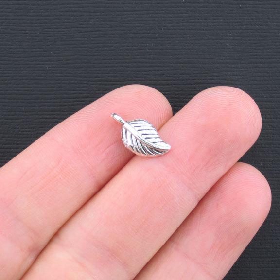 Breloques feuille argenté antique, en alliage de zinc. Parfait pour les bracelets, pendentifs, boucles d'oreilles, tirettes de fermeture éclair, signets et porte-clés !