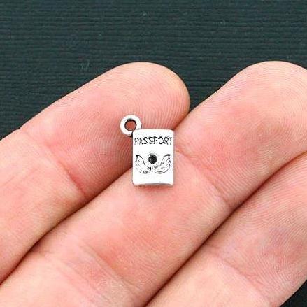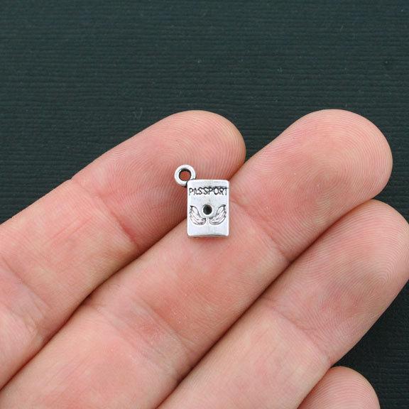 Breloques Passeport couleur argent antique, en alliage de zinc. Parfait pour les bracelets, pendentifs, boucles d'oreilles, tirettes de fermeture éclair, signets et porte-clés !