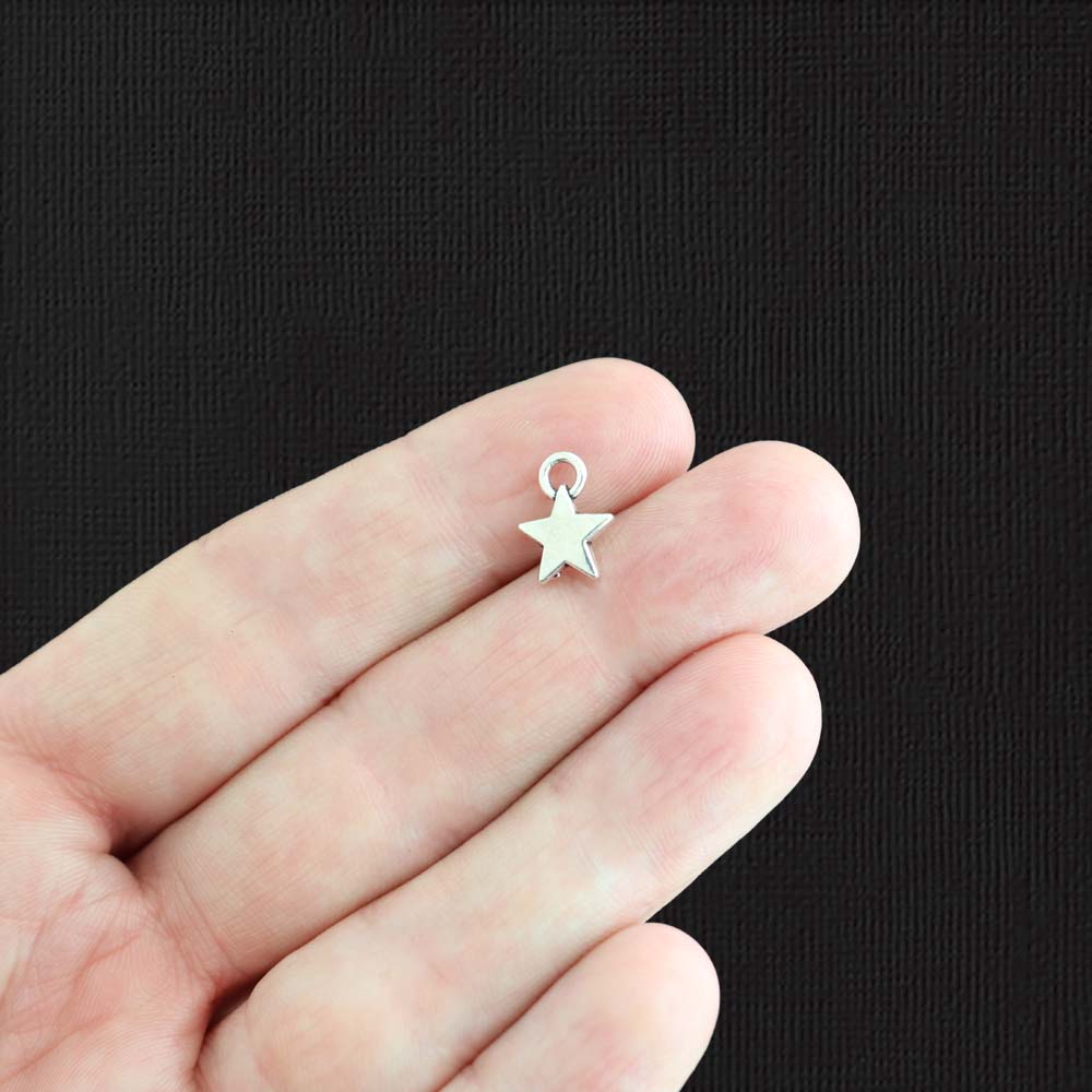 Breloques étoiles argentées antiques, en alliage de zinc. Parfait pour les bracelets, pendentifs, boucles d'oreilles, tirettes de fermeture éclair, signets et porte-clés !