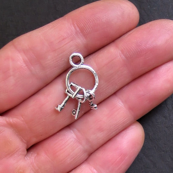 Breloques de ton argent antique clé, dans un métal en alliage de zinc. Parfait pour les bracelets, pendentifs, boucles d'oreilles, tirettes de fermeture éclair, signets et porte-clés !