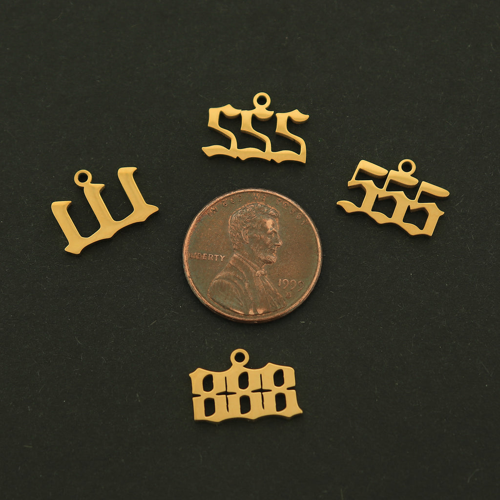 Check out these super dainty angel number charms. They are made of 18k gold plated stainless steel.