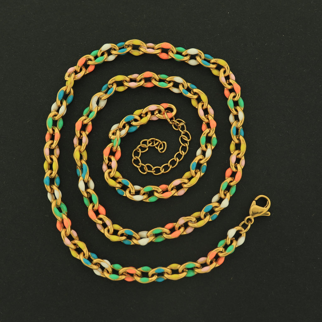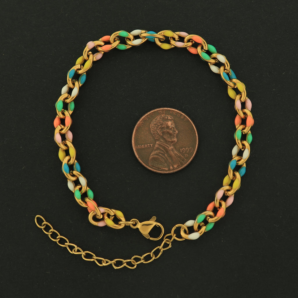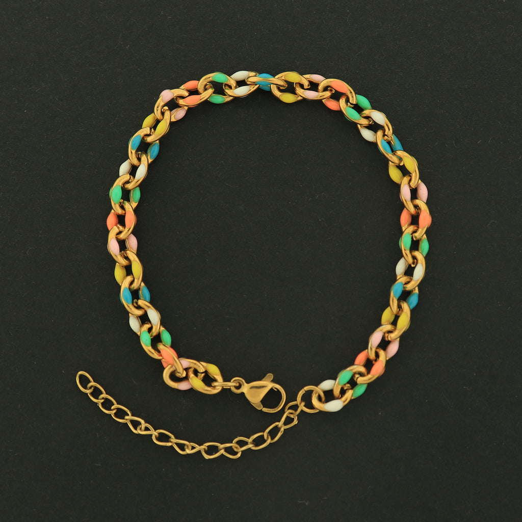 Too busy to make your own chain? Check out these colorful enamel premade bracelets and chains... made of stainless steel and plated with 18k gold.