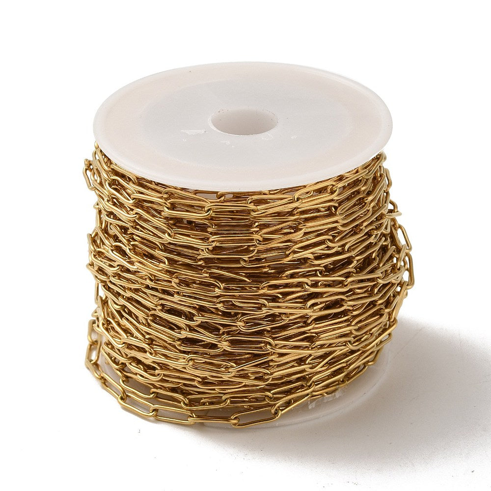 18k Gold Paperclip Chain - Per Foot - 18k Plated Stainless Steel - GLD986