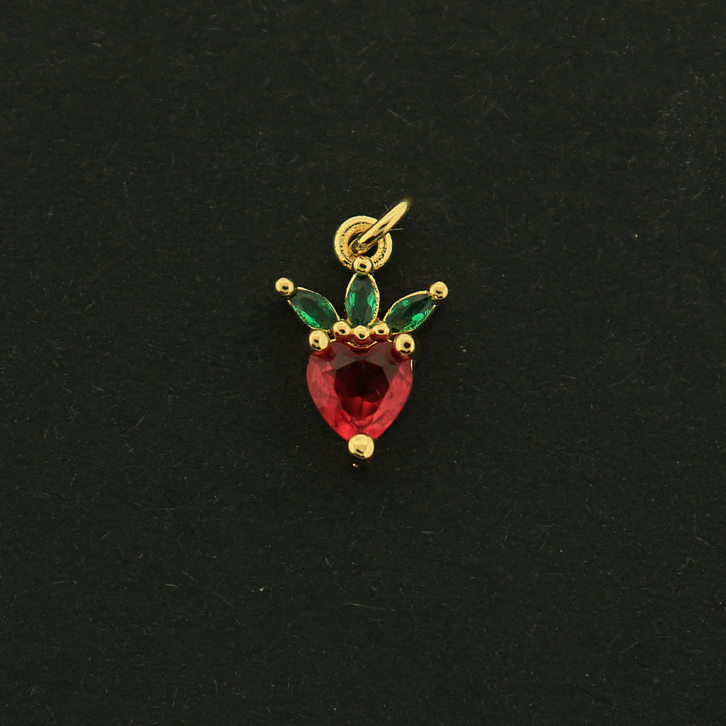Check out these super cute strawberry fruit charms... made with inset CZ rhinestones in green and red with an attached jump ring. They are made of 18k gold plated brass.