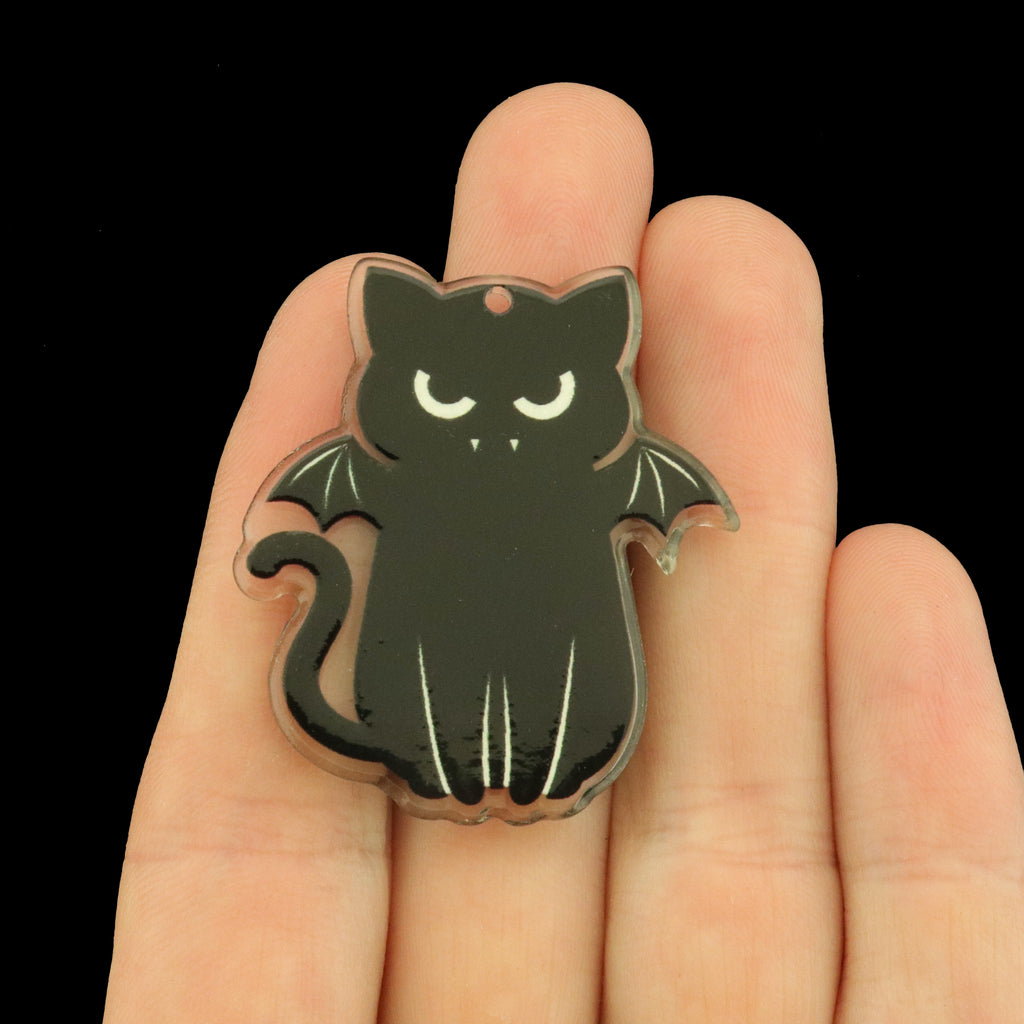 Take a look at these angry black cat charms with wings. They are made of black acrylic... super spooky!