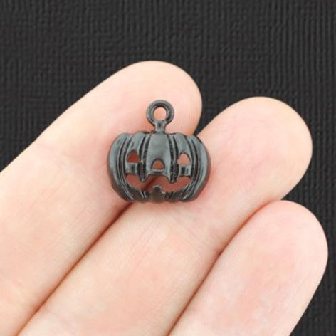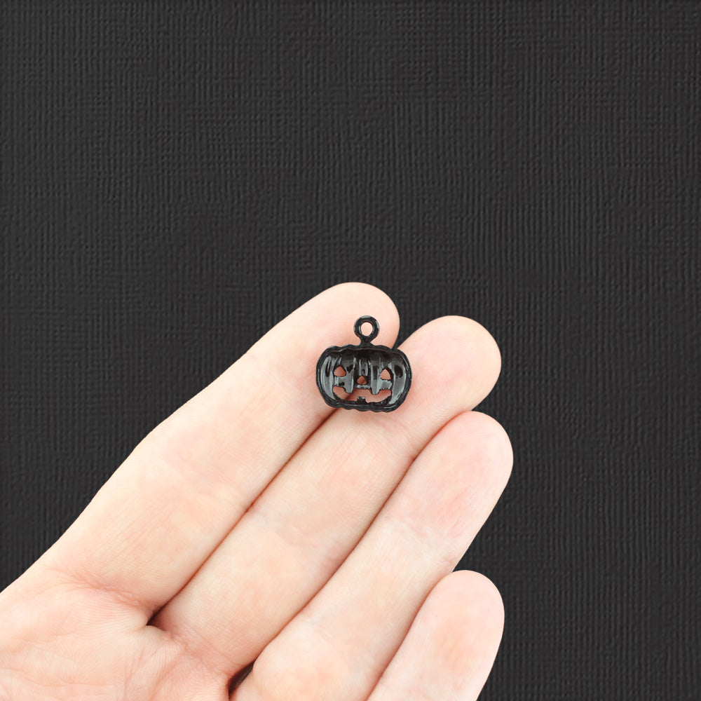 Breloques citrouilles noires, en émail et alliage de zinc. Parfait pour les bracelets, pendentifs, boucles d'oreilles, tirettes de fermeture éclair, signets et porte-clés !