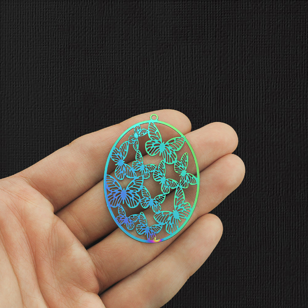 Breloques papillon ovales en acier inoxydable arc-en-ciel galvanisées. Parfait pour les bracelets, pendentifs, boucles d'oreilles, tirettes de fermeture éclair, signets et porte-clés !