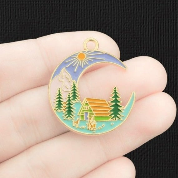 Charmes montagne et cabane dans une forêt, en métal en alliage de zinc et émail. Parfait pour les bracelets, pendentifs, boucles d'oreilles, tirettes de fermeture éclair, signets et porte-clés !