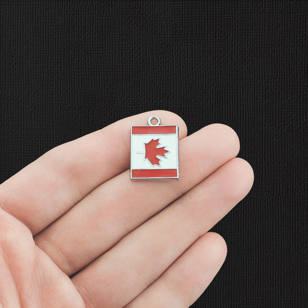 Breloques de ton argent drapeau du Canada, en alliage de zinc et émail. Parfait pour les bracelets, pendentifs, boucles d'oreilles, tirettes de fermeture éclair, signets et porte-clés !