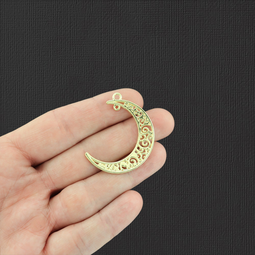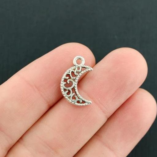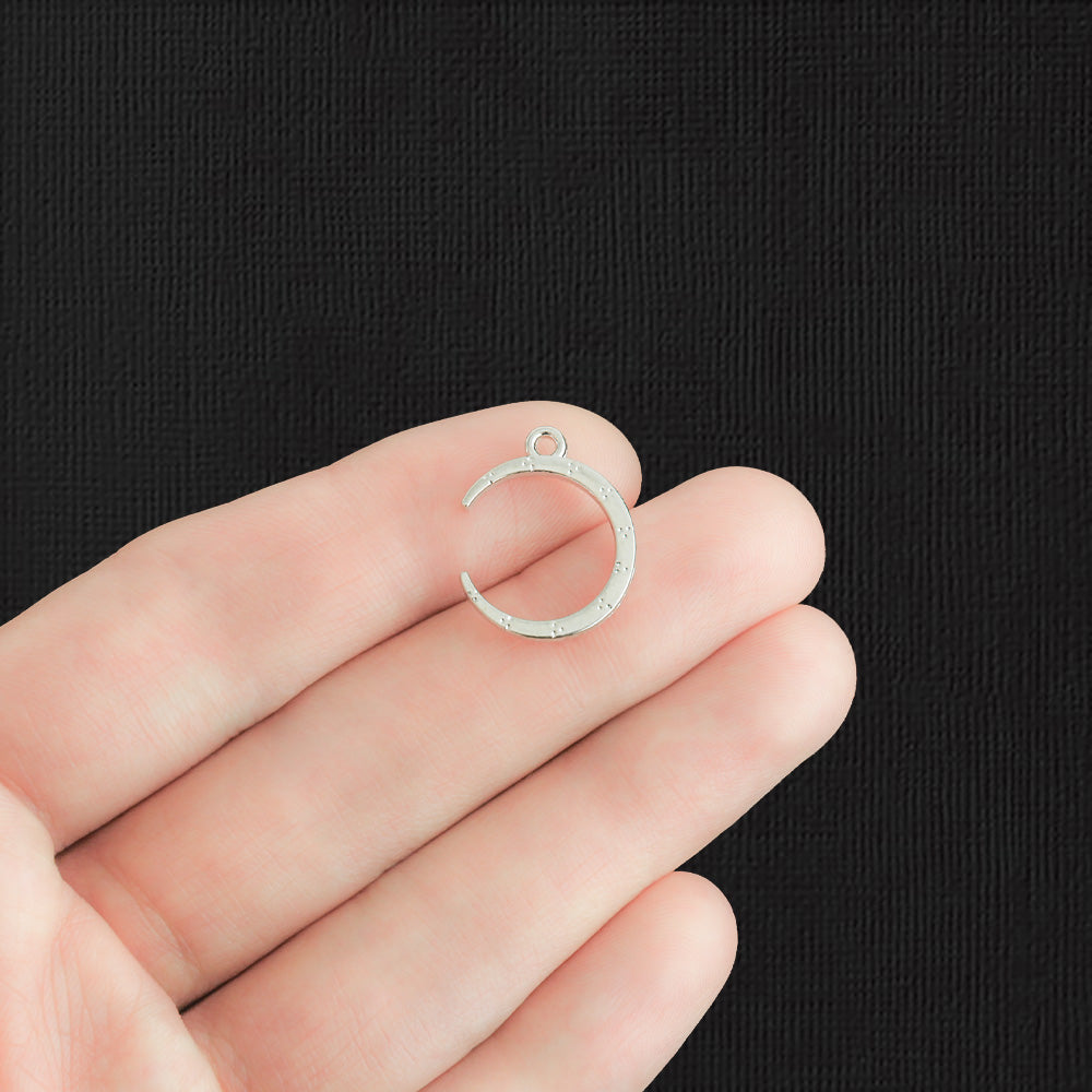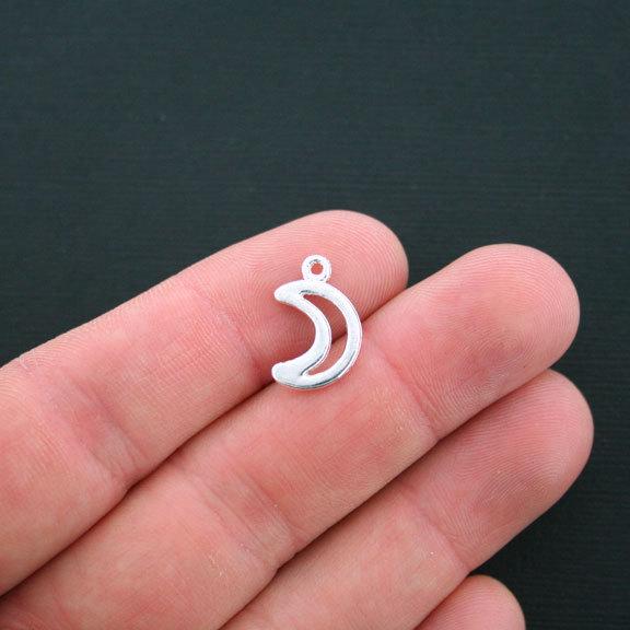 Breloques en forme de croissant de lune argentées avec strass transparents incrustés, dans un métal en alliage de zinc. Parfait pour les bracelets, pendentifs, boucles d'oreilles, tirettes de fermeture éclair, signets et porte-clés !