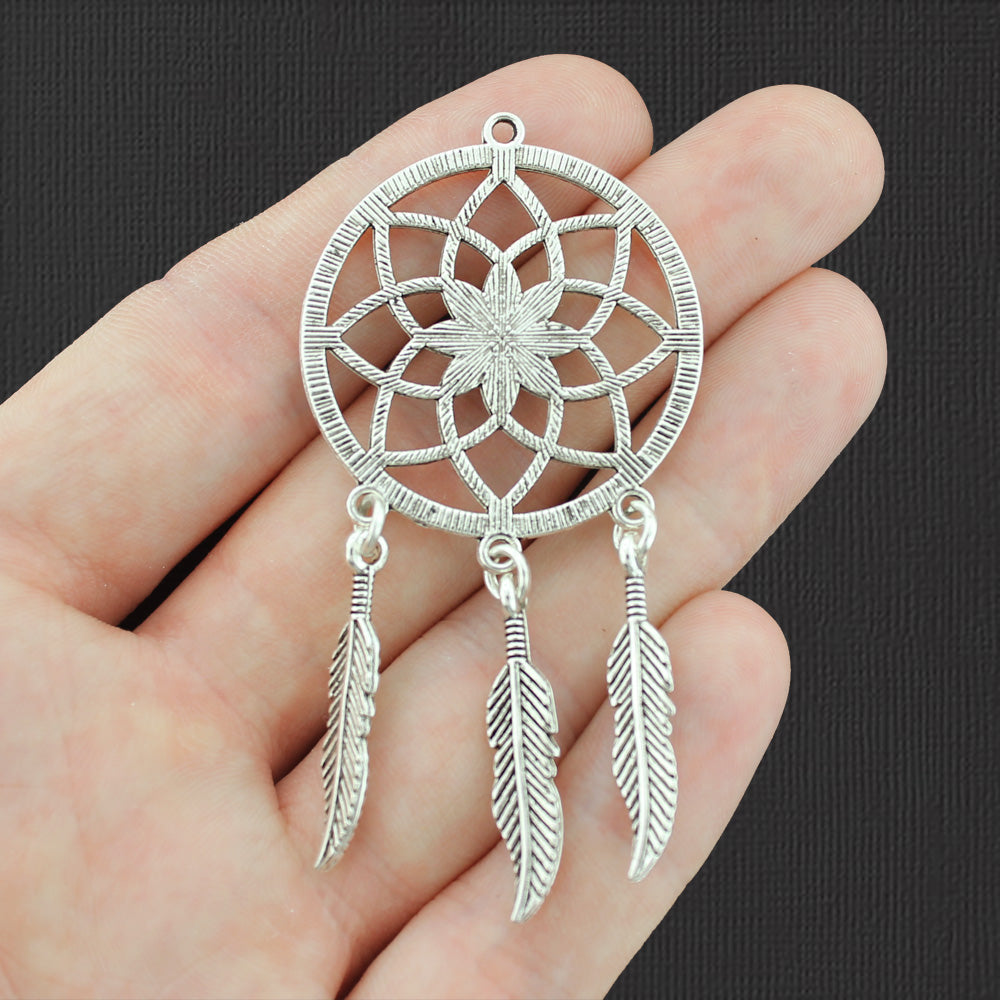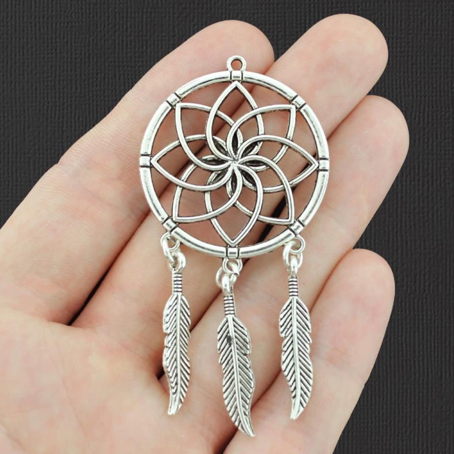 Breloques attrape-rêves ton argent antique avec des breloques plumes pendantes, dans un métal en alliage de zinc. Parfait pour les bracelets, pendentifs, boucles d'oreilles, tirettes de fermeture éclair, signets et porte-clés !