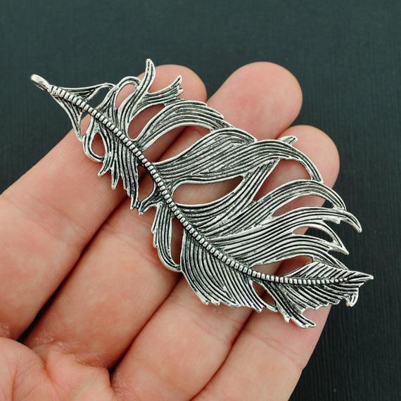 Breloques plumes argentées antiques, en alliage de zinc. Parfait pour les bracelets, pendentifs, boucles d'oreilles, tirettes de fermeture éclair, signets et porte-clés !